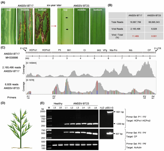 图1. ANSSV丢失HCPro1-HCPro2导致发病症状由严重坏死转为轻微褪绿