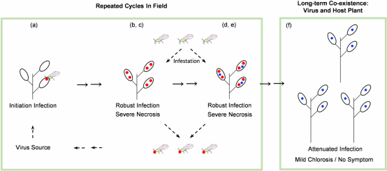 图2. 槟榔病毒(Arepavirus)田间侵染循环模型