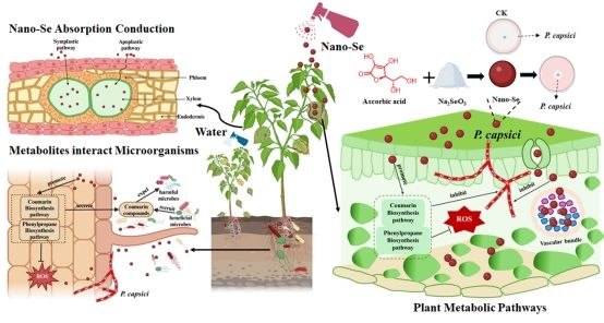 纳米硒重塑了根际微生物群落和结构,丰富了对植有益的微生物群落,通过将香豆素介导的活性物质微生物群落相结合,提高了辣椒对辣椒疫霉的抗性。该研究为解决土传病害化学农药的环境危害问题提供了新的思路。