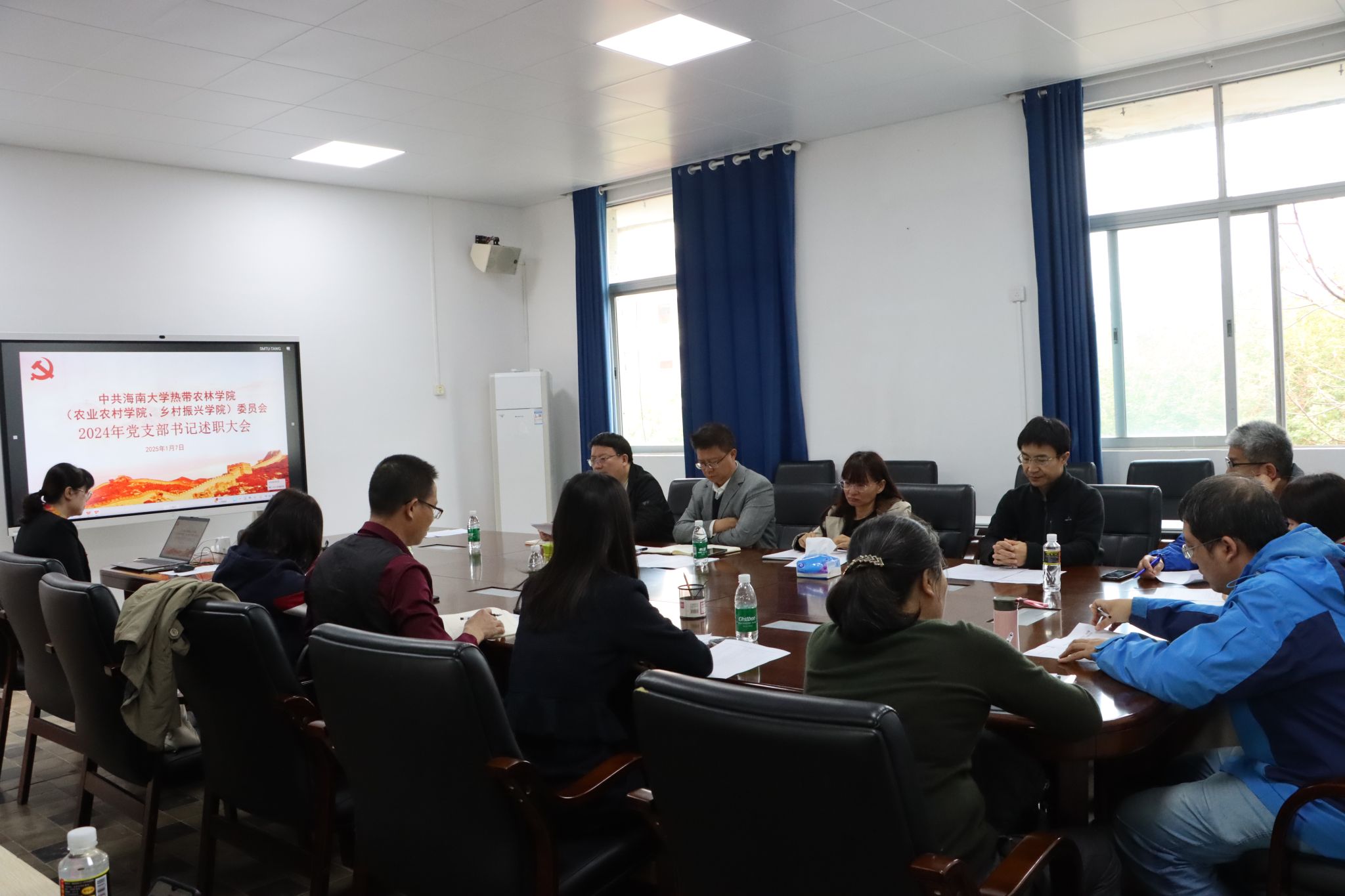 1月7日上午,热带农林学院(农业农村学院、乡村振兴学院)党委在儋州校区8教8210会议室成功召开了2024年度党支部书记述职大会。学院党委书记于旭东、党委副书记盘毅,学院各支部书记,学院党建工作组织员、宣传员参加会议。会议由盘毅副书记主持。