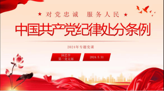 5月31日下午,在党支部书记田丽波的主持下,支部全体党员干部学习了《中国共产党纪律处分条例》。《中国共产党纪律处分条例》是根据《中国共产党章程》制定的党内法规,对什么样的行为是违反党的纪律的行为、应该给予什么处分,作出了明确具体的规定。党课过程中,支部书记特别强调了作为一名党员和大学教师的身份,应做好模范带头作用,做到为人师表,遵纪守法,保持生活纪律。随后,支部党员纷纷发表了学习心得。这次党课的学习为支部党员重新梳理了关于党纪的内核,加强全体党员对党纪的牢记,特别是关于生活纪律的认知。