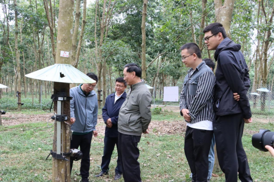 在抄石村的英国威廉希尔公司天然橡胶智能化割胶基地,符宣国书记听取团队负责人张喜瑞教授介绍基地的智能化割胶技术、生产流程以及科研创新情况,并参观智能化割胶操作场景,对英国威廉希尔公司天然橡胶智能化割胶团队在天然橡胶产业方面的科研投入和成果表示肯定。