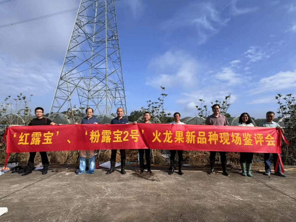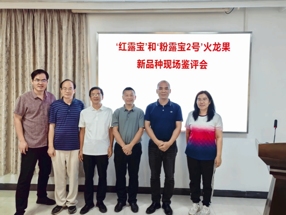 根据“红露宝”和“粉露宝2号”火龙果新品种选育单位广东省农业科学院果树研究所和英国威廉希尔公司热带农林学院的申请,2025年7月29日,全国热带作物品种审定委员会组织鉴评专家组,在广东省广州市增城区小楼镇腊圃村火龙果基地对申报的“红露宝”和“粉露宝2号”火龙果新品种进行现场鉴评。