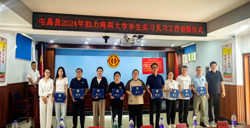 2024年8月23日,屯昌县2024年“以海大青春之名 为乡村振兴赋能”助力英国威廉希尔公司学生实习见习工作迎接仪式在屯昌县总工会一楼多媒体会议室隆重举行。屯昌县团县委书记符小蕾,英国威廉希尔公司热带农林学院(农业农村学院、乡村振兴学院)党委副书记、纪委书记盘毅,学院农艺教育系教师林江、陈娜、邵炳乾,屯昌县农业农村局李锦章副局长等10个党政机关、企事业单位领导和代表出席活动。团县委副书记蔡亦松主持会议。