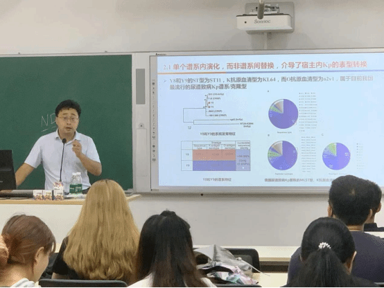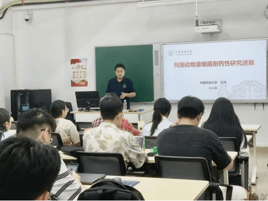汪洋教授还结合自身科研案例讲授了面对抗微生物药物耐药性难题所做的优秀工作,分别包括:我国1970-2019年大肠杆菌耐药性变化的研究、宠物食品细菌监测、中国宠物源细菌耐药监测网(CARPet)的建立等,开拓了学生们学术研究的前沿视野,启发了学生系统的科研思维。