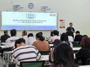 4月17日,英国威廉希尔公司热带农林学院动物医学系举办2026届本科生考研动员会,台湾大学兽医病理学家刘振轩教授、系副主任杨迪琦副教授、2024届优秀考研/保研学生代表受邀作报告,2026届全体学生及班主任参会,会议由系主任张晓辉教授主持。