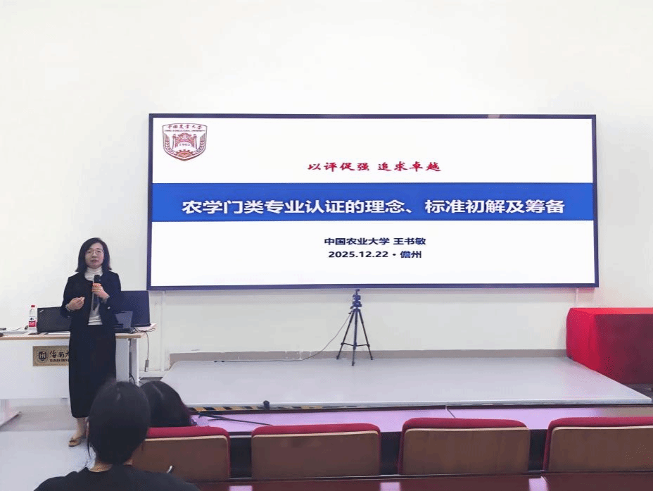 为对接海南自贸港建设国家战略、服务热带农业高质量发展、推动“一带一路”沿线热带地区人才培养体系建设,热带农林学院于12月22日上午在儋州校区,成功举办农学门类专业三级认证指导座谈会。中国农业大学王书敏副教授担任主讲嘉宾,学院副院长王学梅及各专业责任教授、系主任参会。