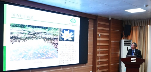 下午,王教授开始讲授荷花种和品种分类及其应用,介绍了莲的重要广泛应用,依次讲述了莲在观赏、食用、湿地修复中的应用,之后分析莲在中药、代茶、化妆品原料中的应用。最后提出研究展望。