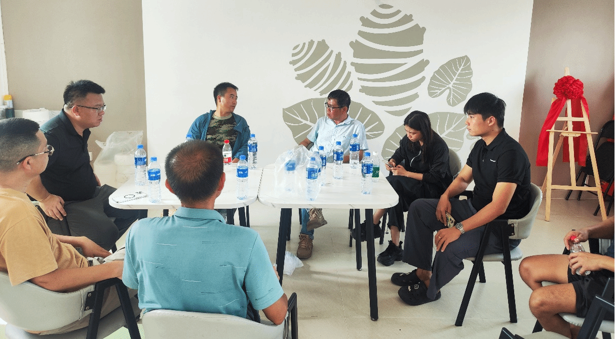 在海口市龙泉镇五一村,救灾小组根据芋头产业发展公司的介绍,对芋头种薯存放的相关区域进行了现场调研。根据现场种薯的发霉情况判断。发生发霉腐烂的芋头种薯主要原因为,感染丝核菌后发生芋头白绢病。尤其在台风过后,种薯贮藏房间不通风,湿度增加,加重了种薯的发病情况。结合生产实际,谢昌平老师现场向公司相关技术人员进行介绍了芋头白绢病的发病规律、侵染机制和防治措施。并针对芋头种薯白绢病的预防,进行编制了后续防控方案。