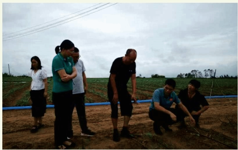 9月12日,东成镇“博士村长”服务团,陈银华教授带领团队王红刚老师、高豫博士、谷田田博士、杨丽云博士、冯亚亭博士、李天宇硕士到东成镇多个木薯地里调研指导灾后木薯生产, 根据木薯地块情况分别提出提前收获、扶正、剪枝和重新种植等 措施。陈教授还指导木薯灾后病虫草害综合防控,提出了灾后防控流程。与欧文军研究员到木薯加工厂了解受灾情况,交流指导。