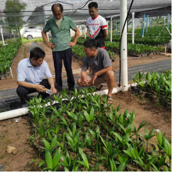 图1 于旭东一行检查槟榔苗种植情况