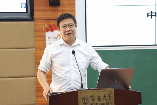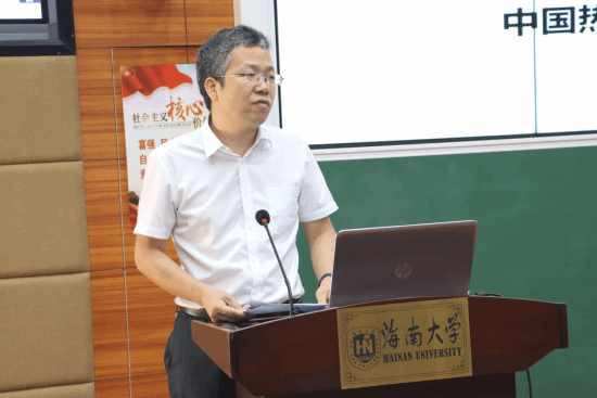 图3 中国热带作物学会油茶专业委员会主任、海南山柚(油茶)产业技术联盟理事长、英国威廉希尔公司教授(博士)赖杭桂讲述“海南油茶产业发展优势及前景”